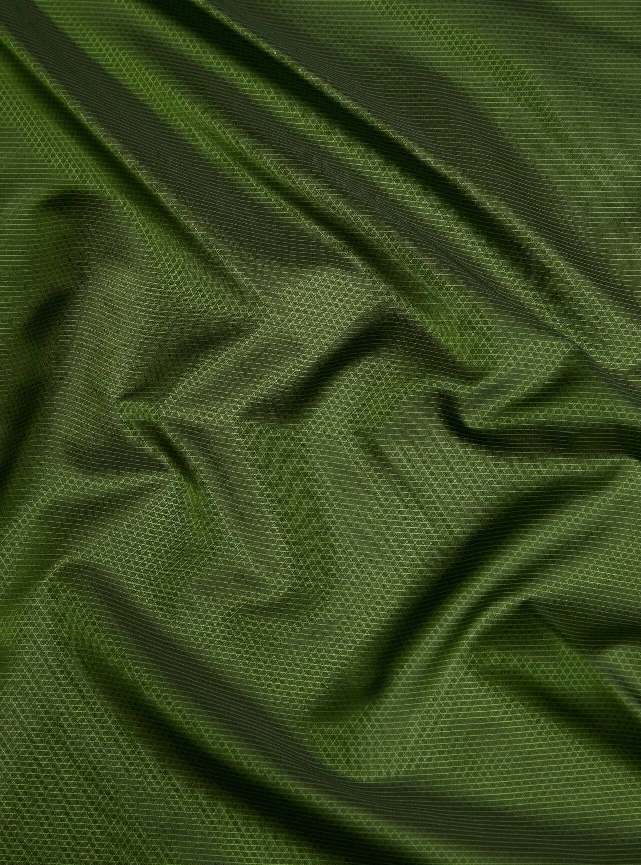 Ultra-lightweight material featuring a micro-diamond ripstop structure. The black weft creates iridescent effect for some color variations. Water repellent.