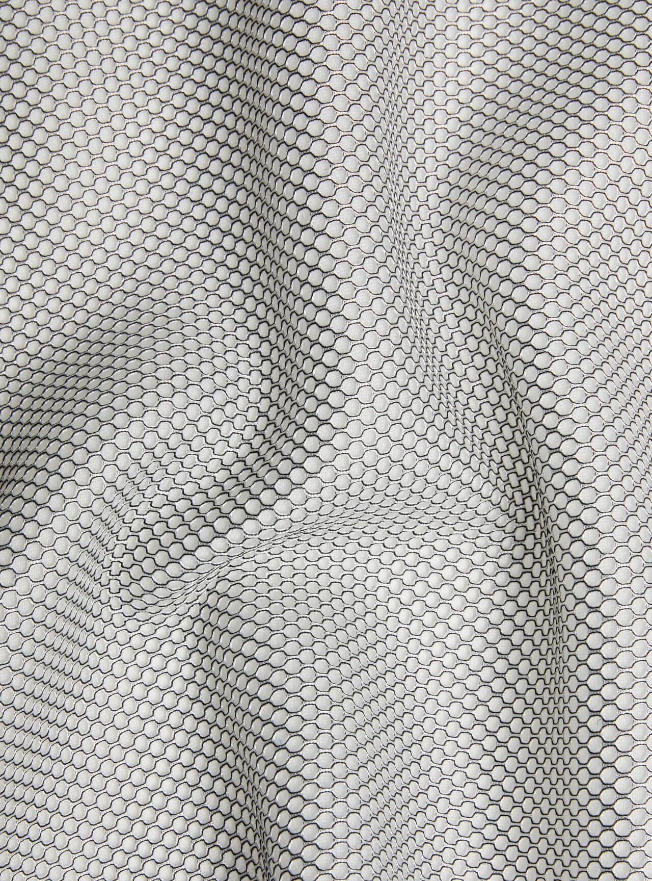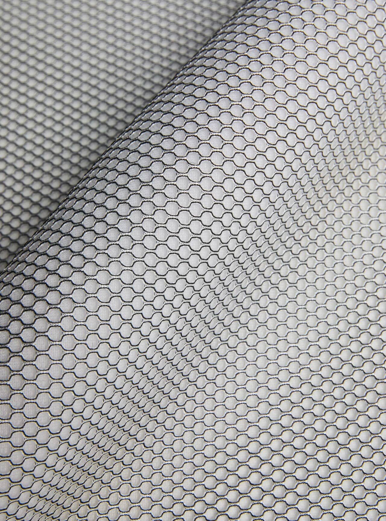 mesh 3D double face con struttura esagonale. Il filato a contrasto empatizza la tridimensionalità di questo materiale.