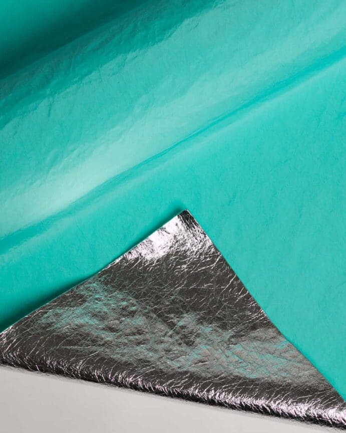 Leggera microfibra accoppiata con una lamina argento a rovescio.