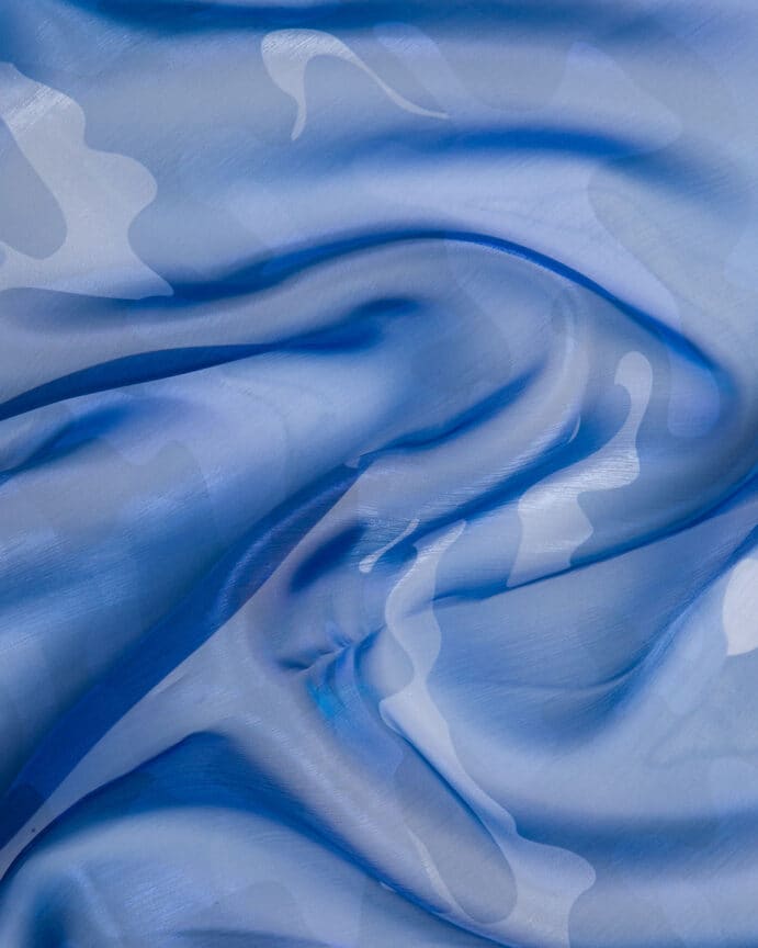 Organza super leggera e trasparente stampata in digitale, personalizzabile.