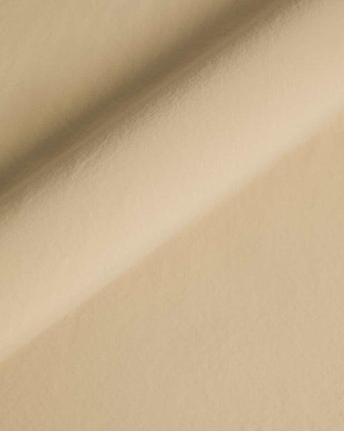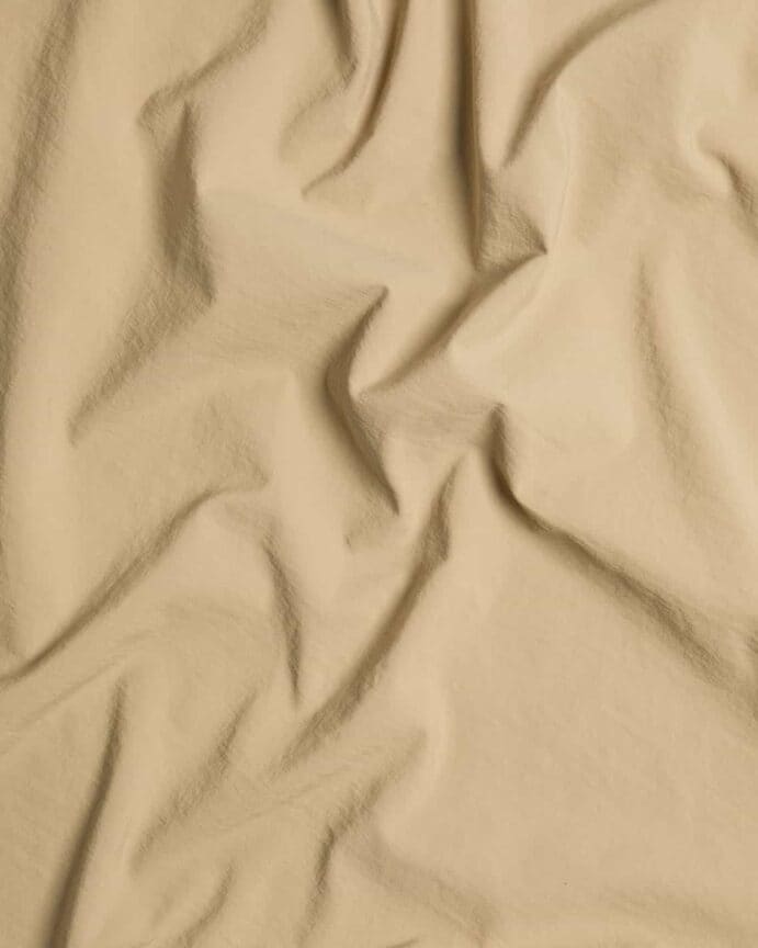 Articolo di medio peso prodotto con un filato di nylon riciclato (100% pre consumer, da scarti tessili industriali), tinto pezza e trattato con Water Repellent PFC FREE. Aspetto super opaco e mosso.