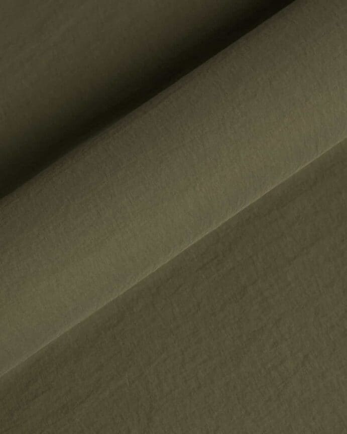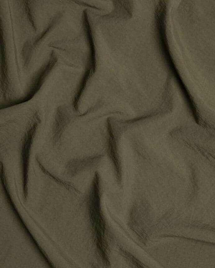 Tessuto prodotto con filato taslan super opaco, aspetto mosso, effetto cotone al tatto.